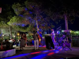 Difficile de résister à l’appel de la soirée “gambas grillées” : les papilles étaient en fête, accompagnées des notes entraînantes du chanteur du groupe Chic Wah Wah. Une ambiance festive qui a fait danser les convives jusque tard dans la soirée, entre convivialité et gourmandise.